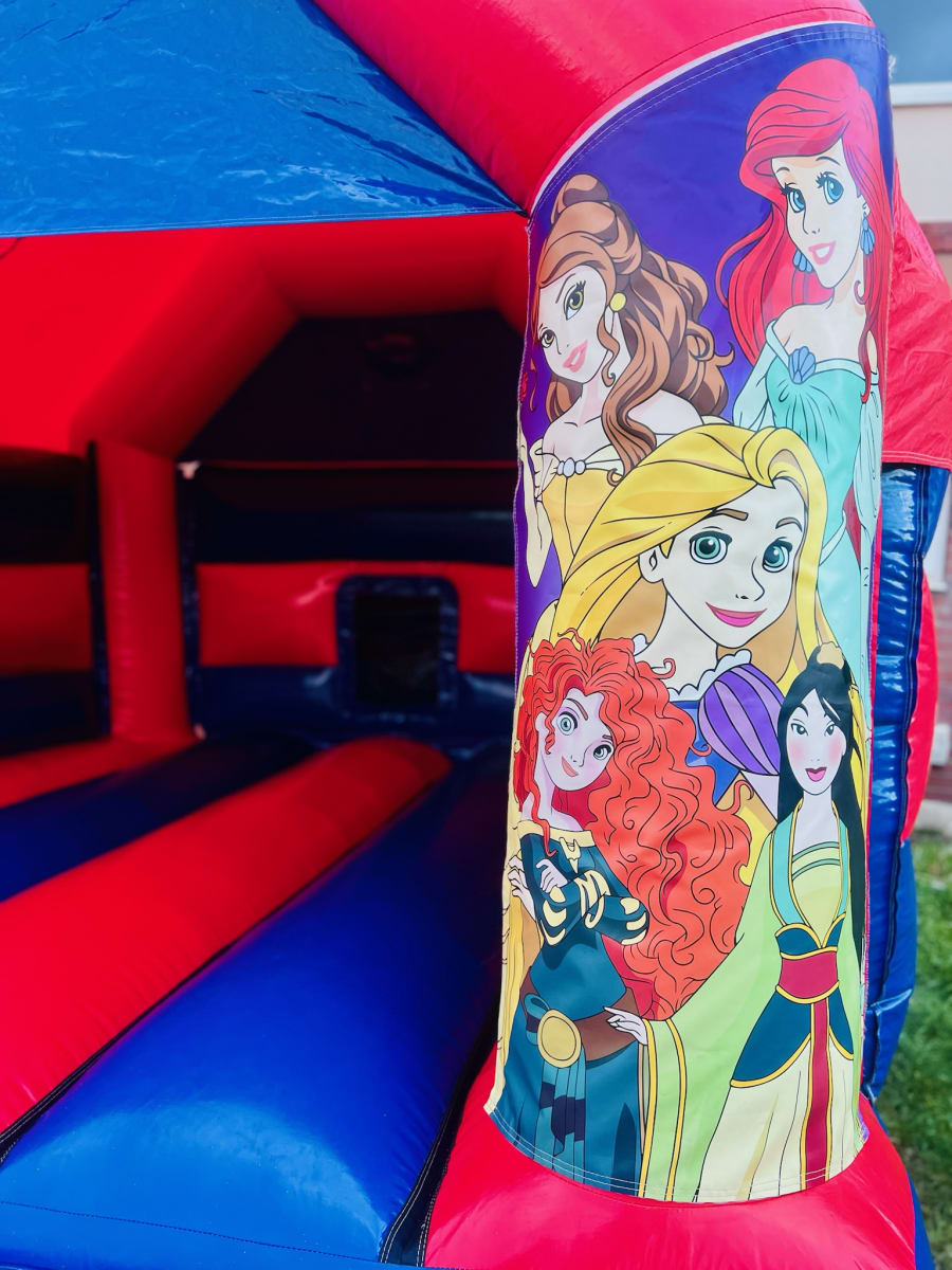 This stunning bouncy castle features beautiful Disney Princess-themed artwork with a hint of purple, adding a royal touch to its design. The spacious bounce area offers plenty of room for children to jump, play, and imagine themselves in their own magical kingdom. Its compact yet versatile design makes it suitable for both indoor and outdoor use, fitting a variety of venues such as gardens, halls, and community centres.