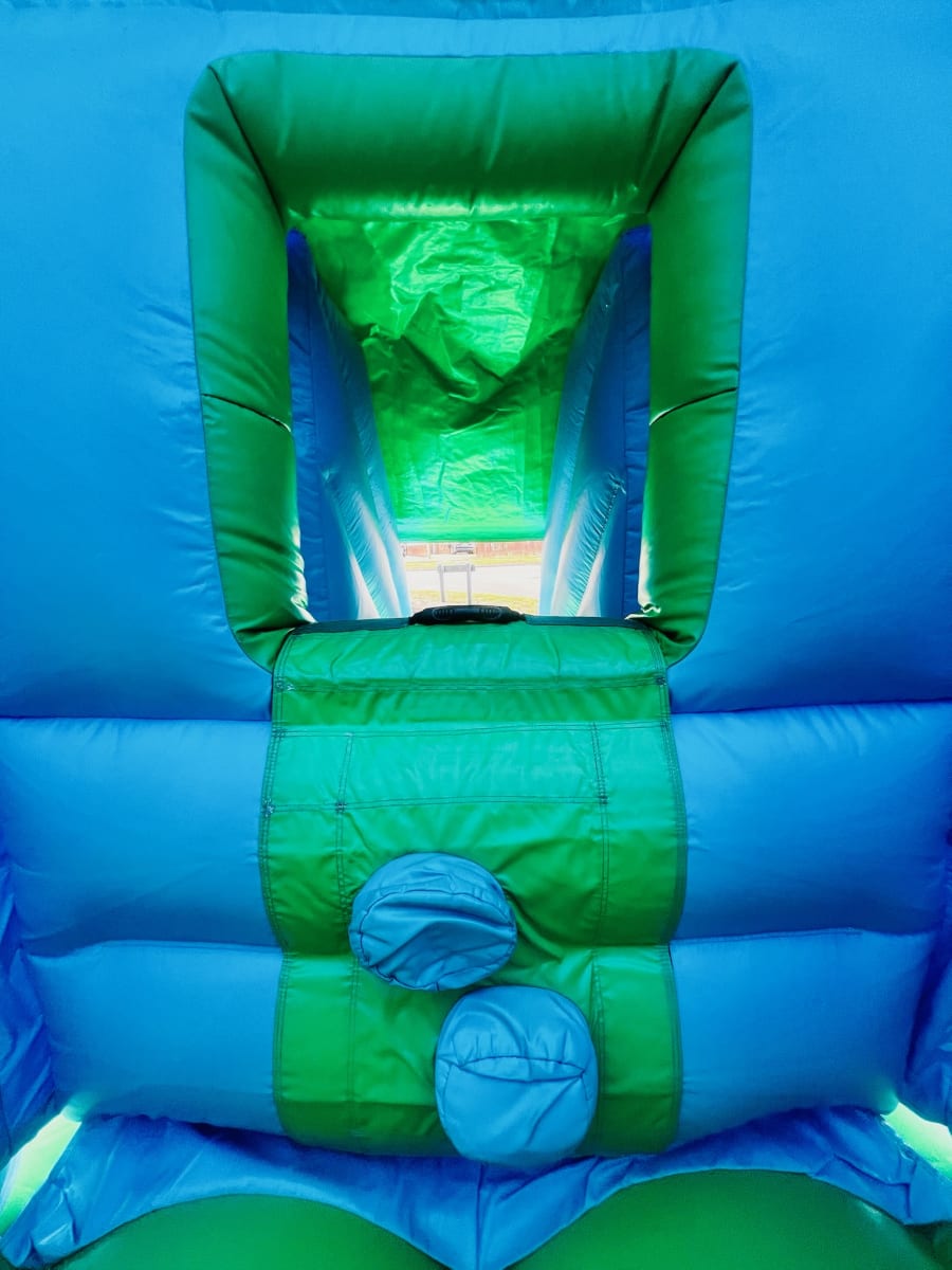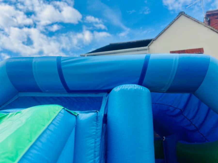 Plain Green & Blue Front Slide & Bounce For Hire In Doncaster, Rotherham, Sheffield and surrounding areas!