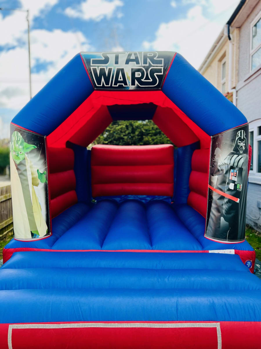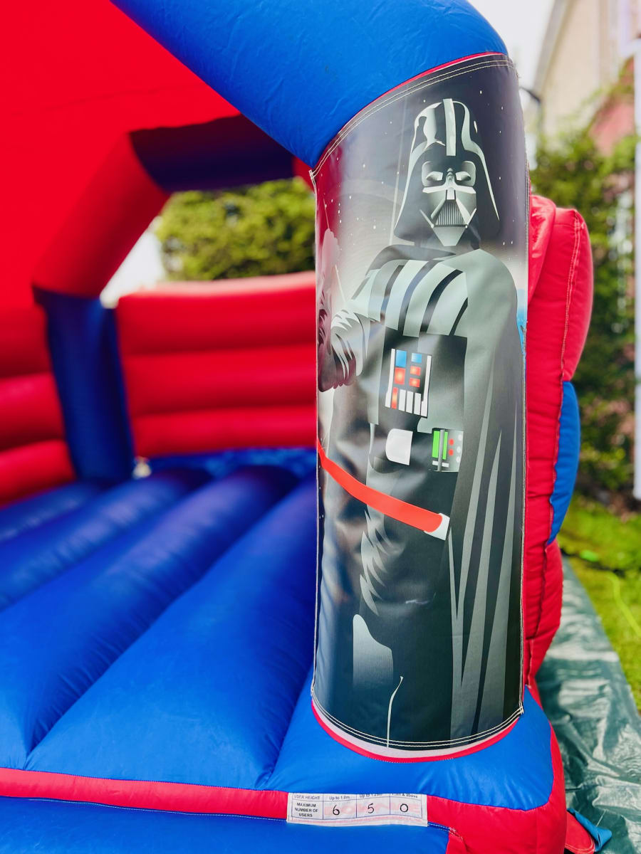 Embark on an epic galactic adventure with our Star Wars Bouncy Castle – an inflatable galaxy far, far away that brings the excitement of the Star Wars universe to your celebration! Perfect for birthdays, sci-fi-themed parties, and events where young Jedi's and Siths are ready for intergalactic fun, this dynamic castle features iconic Star Wars imagery, creating an out-of-this-world atmosphere for all the aspiring space travellers.