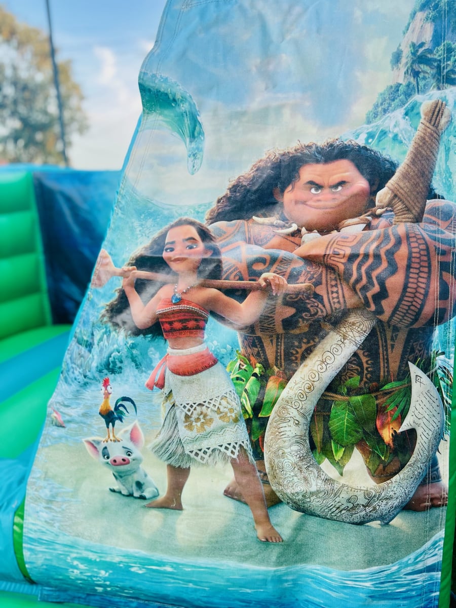 Children will be transported to the enchanting world of Moana as they enter this inflatable paradise. The detailed artwork showcases Moana, Maui, and other beloved characters in vibrant colours, creating an immersive and visually stunning play space that captures the spirit of Oceania.