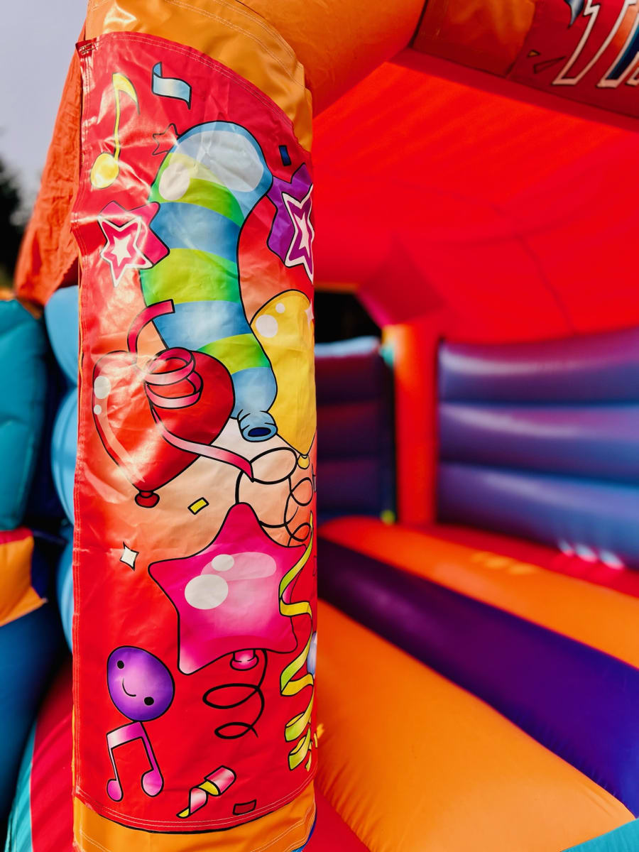 Immerse yourself in a sea of red with our Red Party Time Side Slide & Bounce. The bold colour scheme sets the stage for a festive atmosphere, perfect for birthdays, celebrations, or any occasion that calls for a touch of excitement. Children will be captivated by the lively artwork and energetic design, creating an environment of joy and laughter.