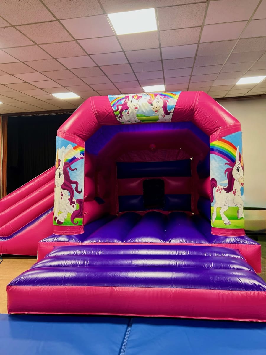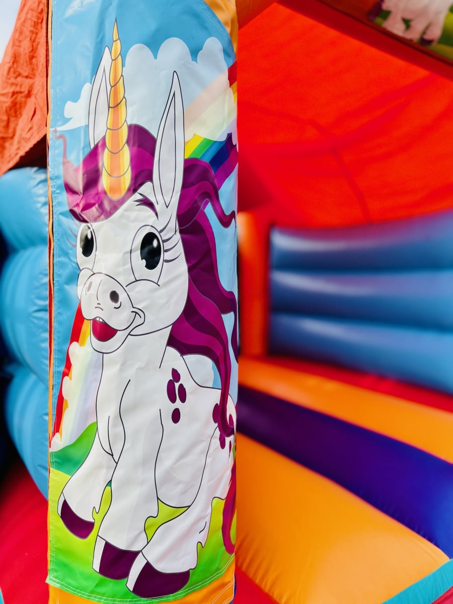 Step into a magical realm with our Unicorn Side Slide & Bounce – an enchanting inflatable adventure that brings the whimsy of unicorns to life! This dynamic bouncy castle combines the thrill of bouncing with the enchantment of unicorns, offering an immersive play experience that will captivate imaginations.