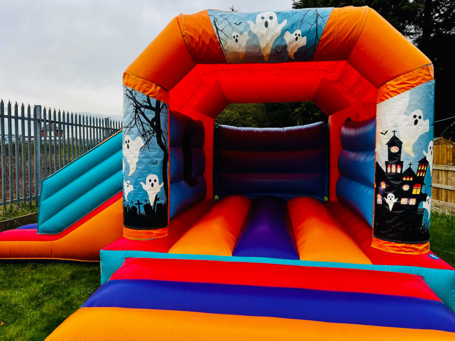 Step into a world of spooky fun with our Haunted Side Slide & Bounce – the ultimate inflatable adventure that brings the thrills and chills of a haunted house to your event! This eerie bouncy castle combines the excitement of bouncing with the spooky atmosphere of a haunted mansion, offering an unforgettable play experience for brave souls of all ages.
