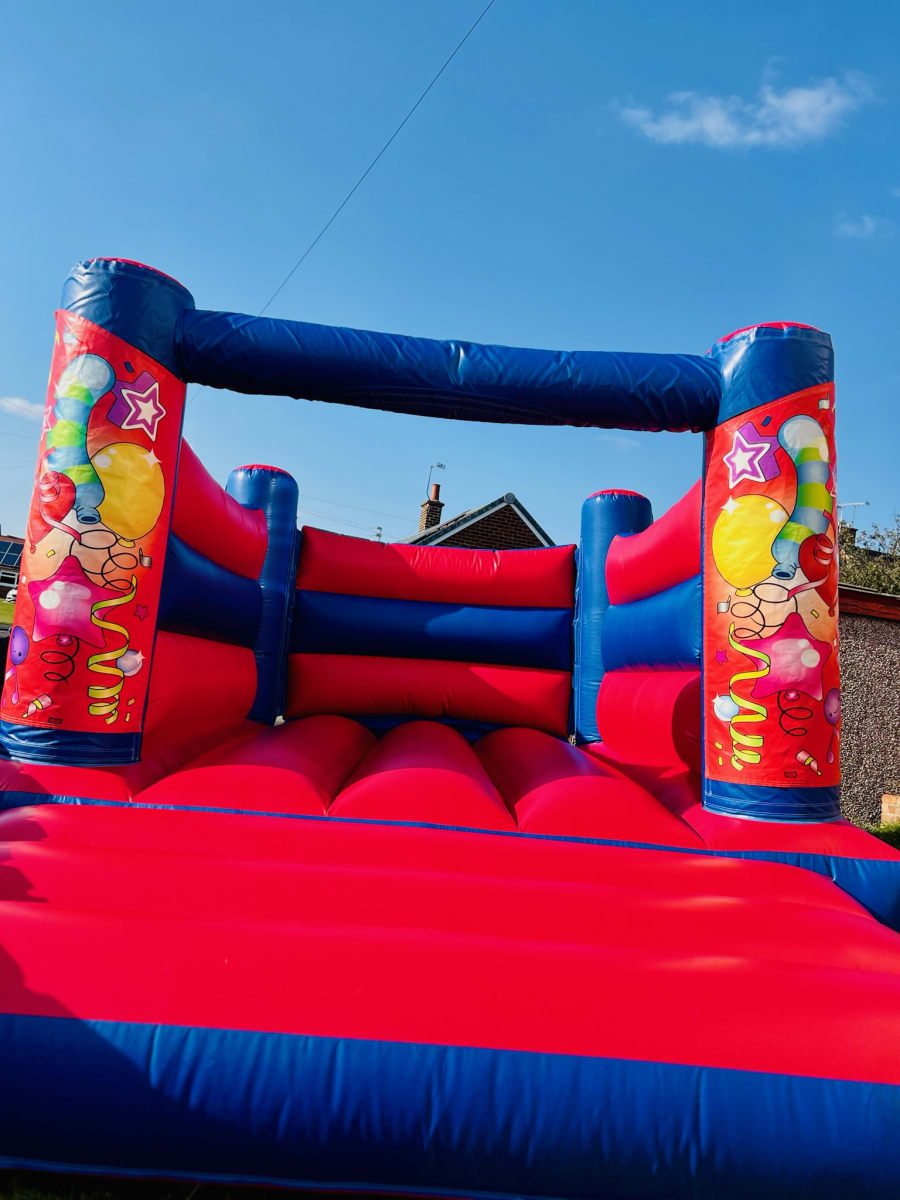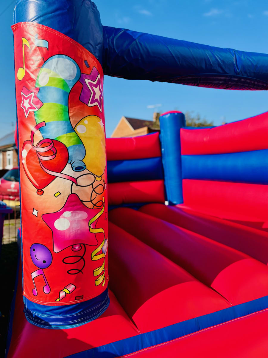 Red Party Time H-Frame Indoor Bouncy Castle For Hire In Doncaster, Rotherham, Sheffield and Surrounding Areas!