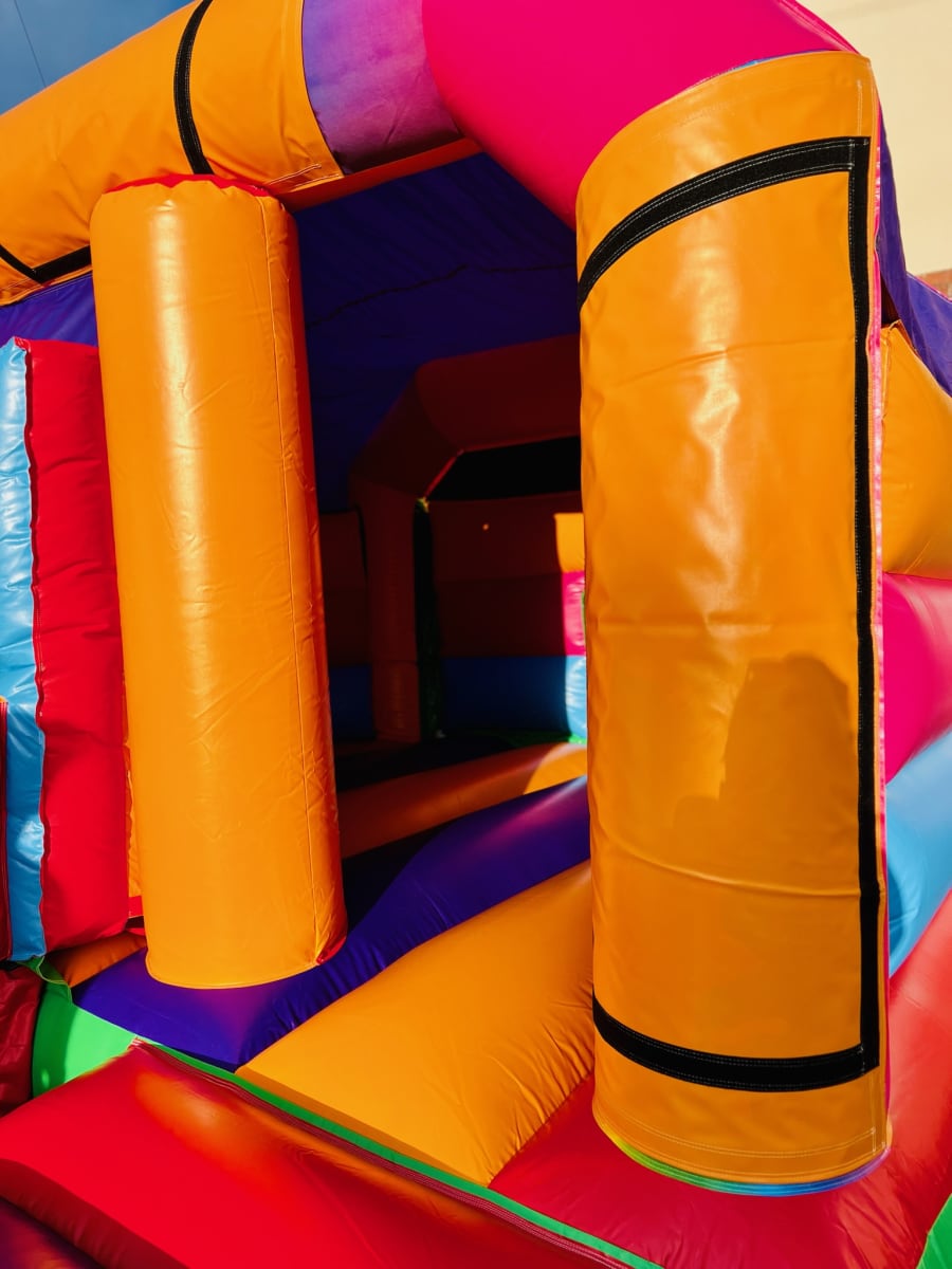 Our team will handle the delivery, setup, and takedown, ensuring a stress-free experience for you. The Plain Multi-Coloured Front Slide and Bounce Bouncy Castle is thoroughly cleaned and maintained, providing a safe and hygienic environment for children to enjoy.