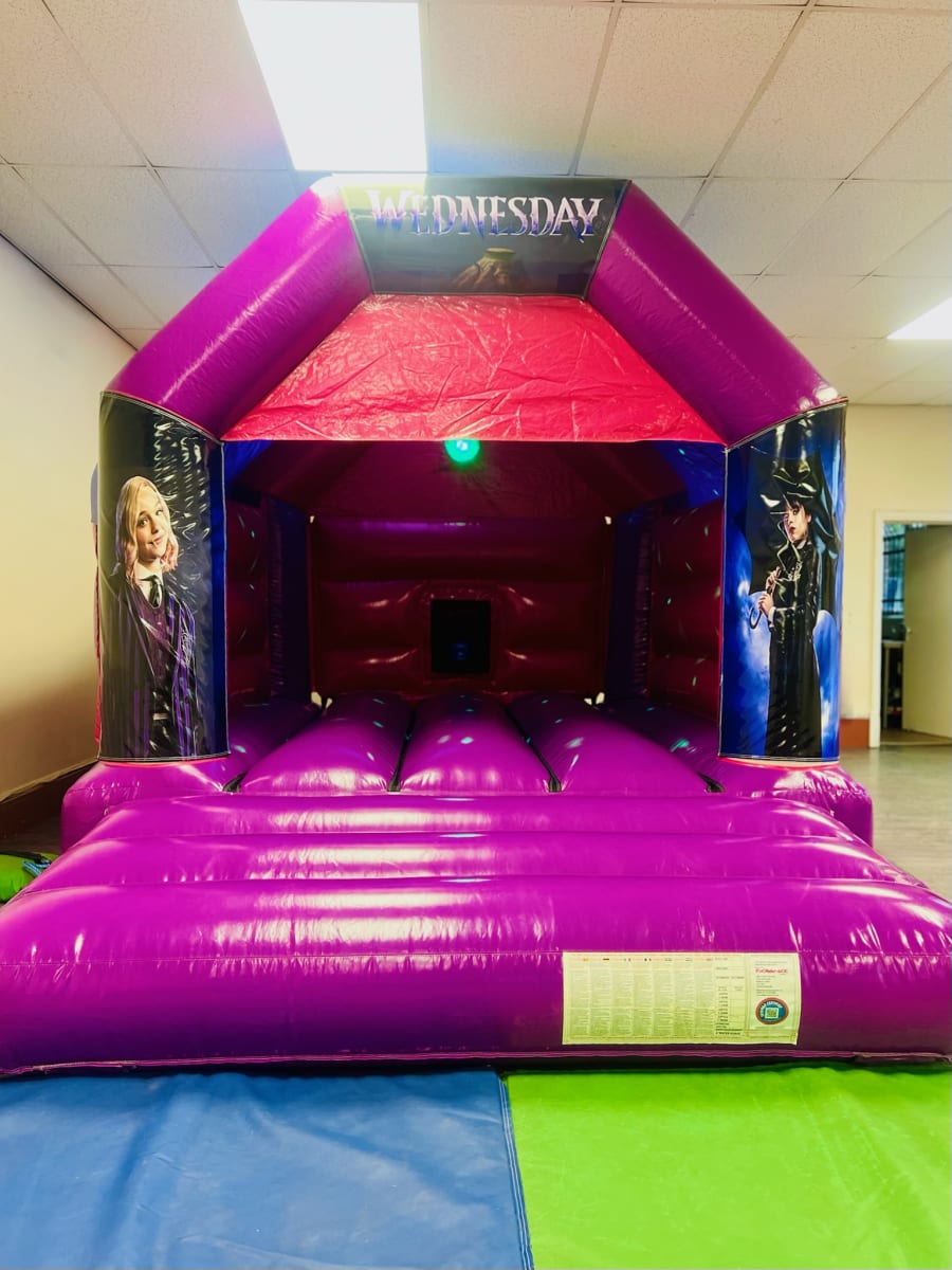 Easy to set up and suitable for both indoor and outdoor venues, the Wednesday Addams Bouncy Castle is the perfect way to add a dash of spooky fun to your gathering. Book now and let the mysterious adventure begin!