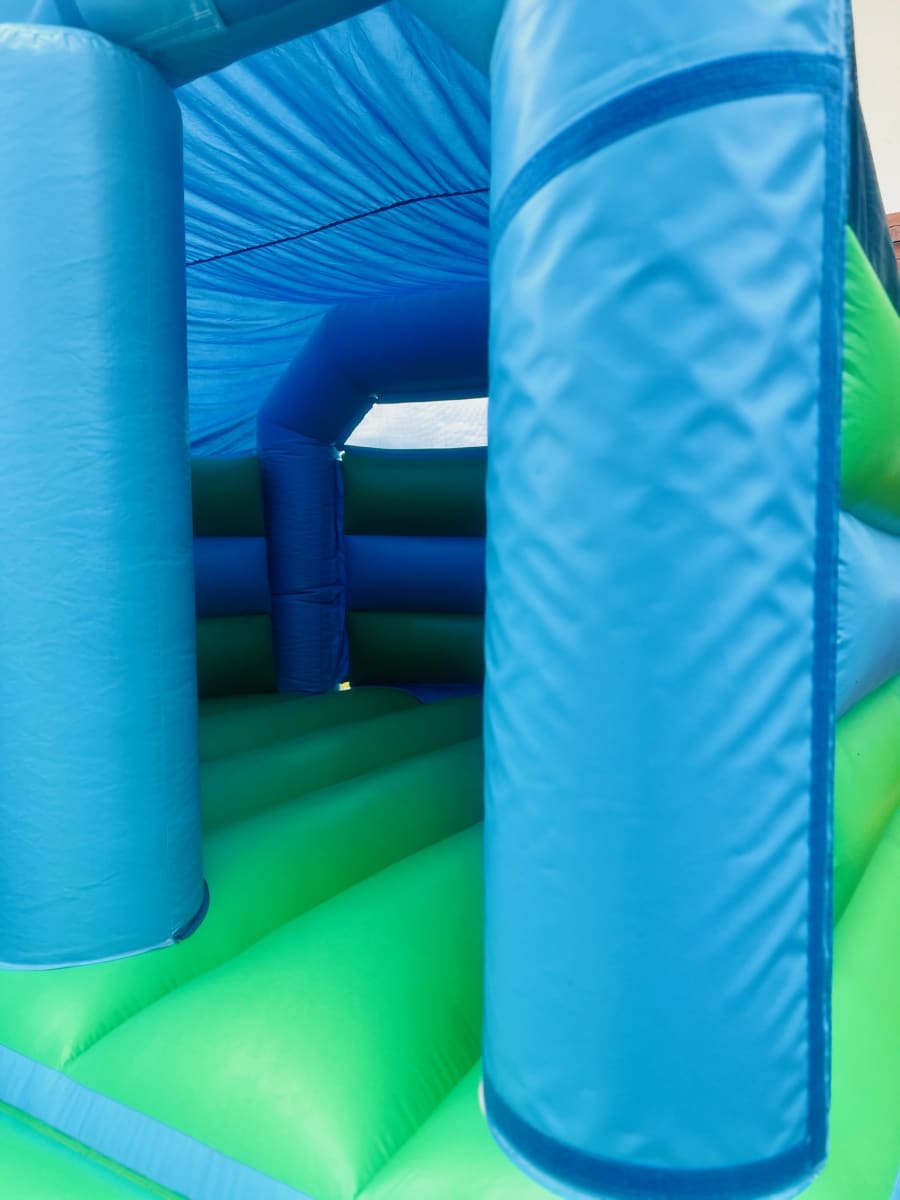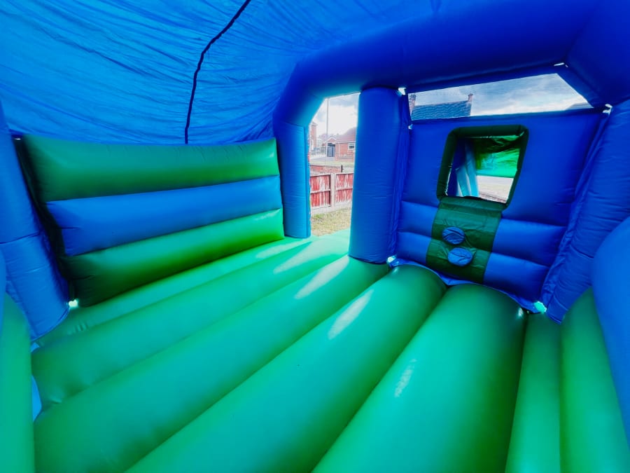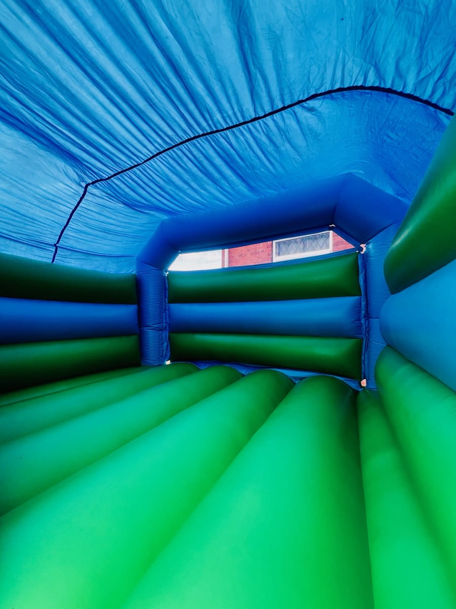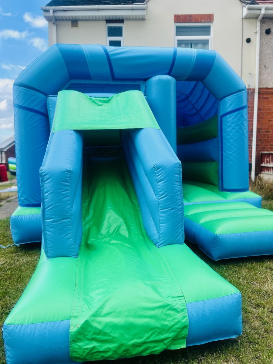 Plain Green & Blue Front Slide & Bounce For Hire In Doncaster, Rotherham, Sheffield and surrounding areas!