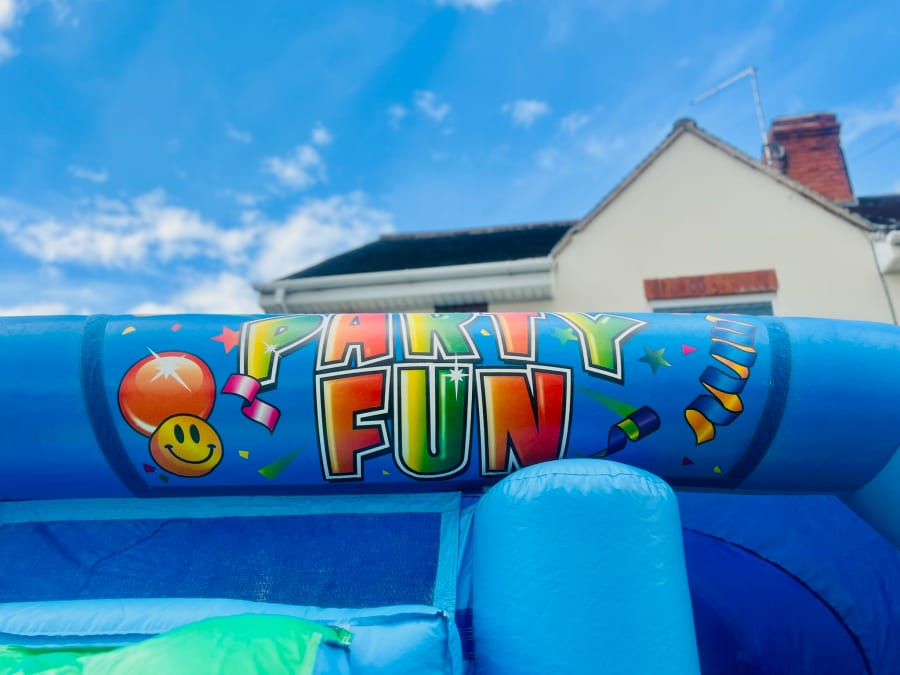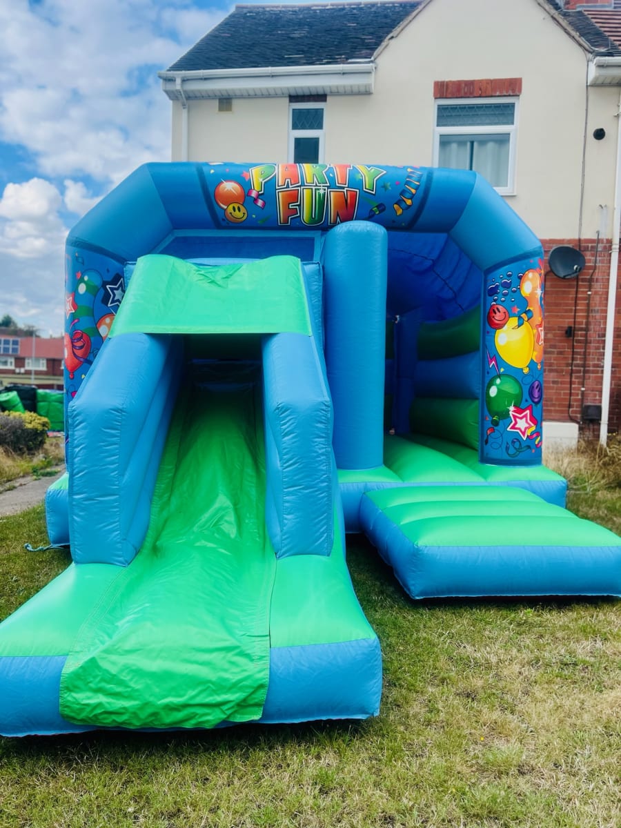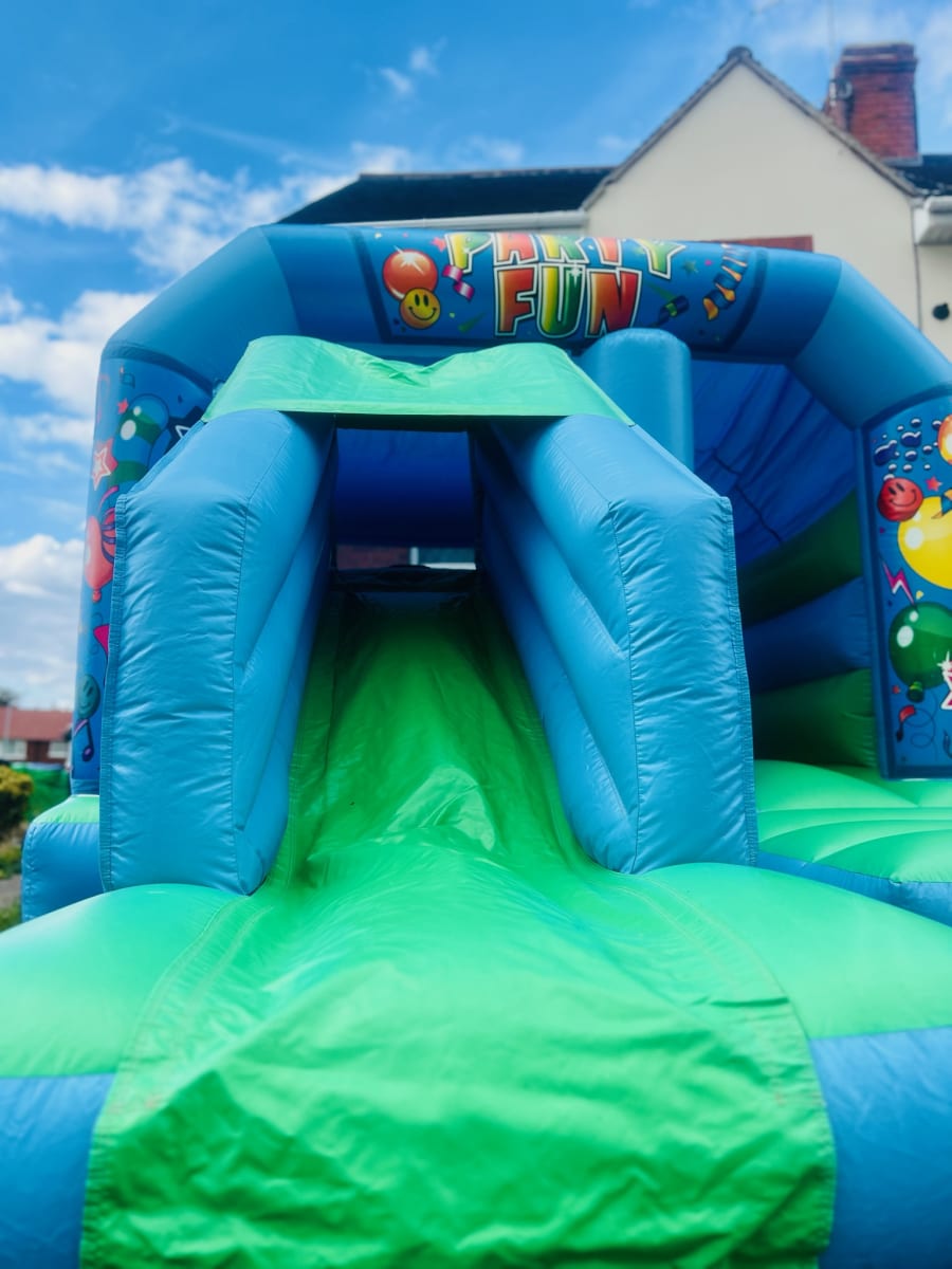 Party Fun Green & Blue Front Slide & Bounce For Hire In Doncaster, Rotherham, Sheffield