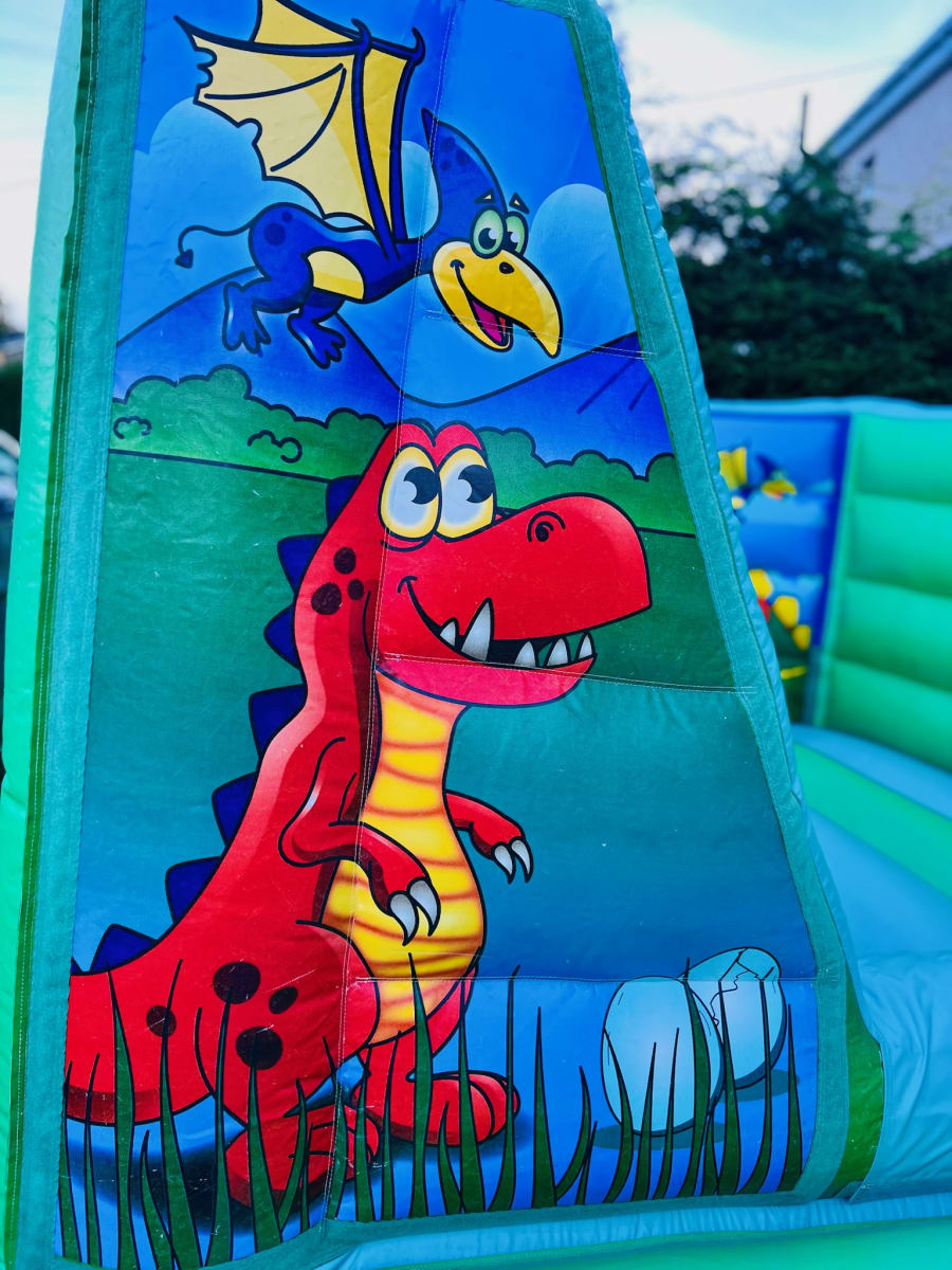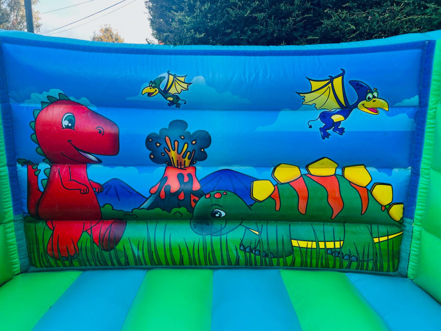 Bring the excitement of the prehistoric era to your celebration with our V-Front Dinosaurs Bouncy Castle. Book this thrilling inflatable today and let the adventure begin for the young palaeontologists at your event!
